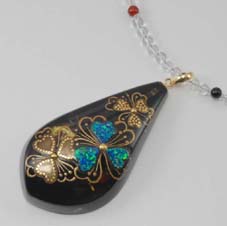 シェル 琥珀 ペンダントトップ 京蒔絵師-上原大佳作