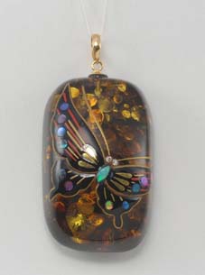蝶 琥珀 ペンダントトップ 京蒔絵師-上原大佳作